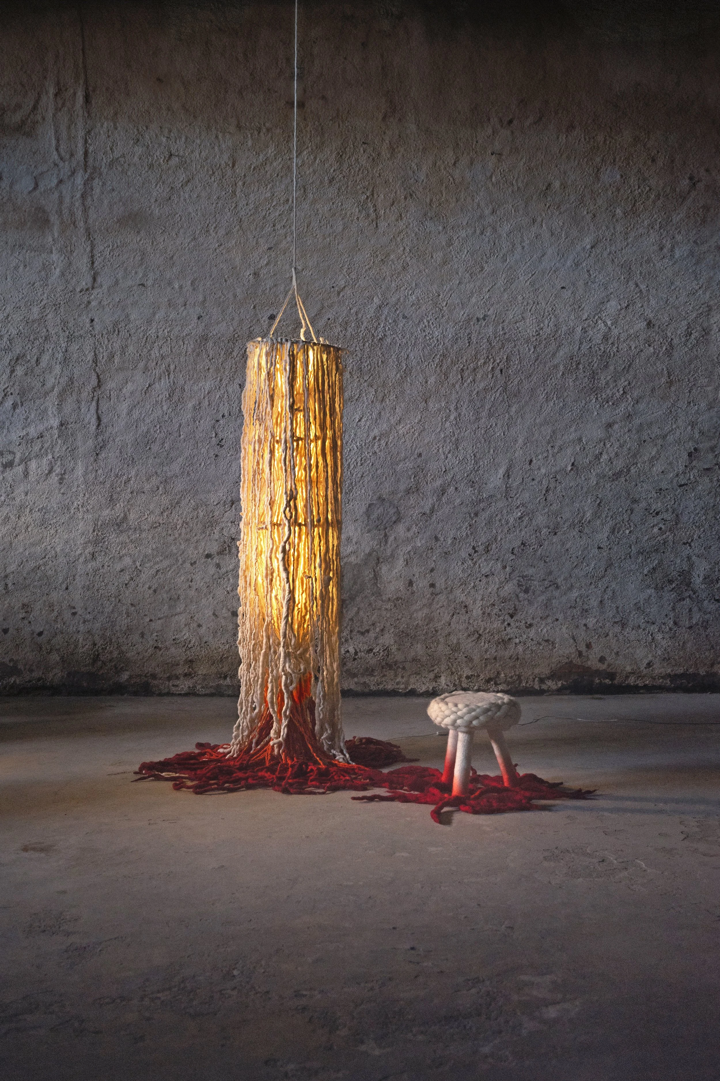 The Rozimas collection is a limited series of cultural artifacts that go beyond their original function. The project, developed by designer Tiago Braga in partnership with artisans from Ladrilã Association, encourages collective collaboration and also rescues and updates the sustainable management and knowlodges of sheep's wool for rural artisans in the extreme south of Brazil. The Rhizomes, represented by twisted and felted wool threads, are not just a visual element, they are an expression of respect for the Brazilian Pampa Biome and the importance of its preservation. Rhizomes are tangles of lines in constant interaction (flows), with no defined beginning or end, they are roots that are sometimes stratified on a solid base, other times they remain fluid as power. Essential for the health of the entire herd, sheep shearing provides quality of life and comfort to the animal. Extracted respectfully to create the roots that form the collection's artifacts, sheep's wool is a natural, renewable and biodegradable resource. This raw material values social and environmental sustainability, in addition to promoting the circular economy in the region.