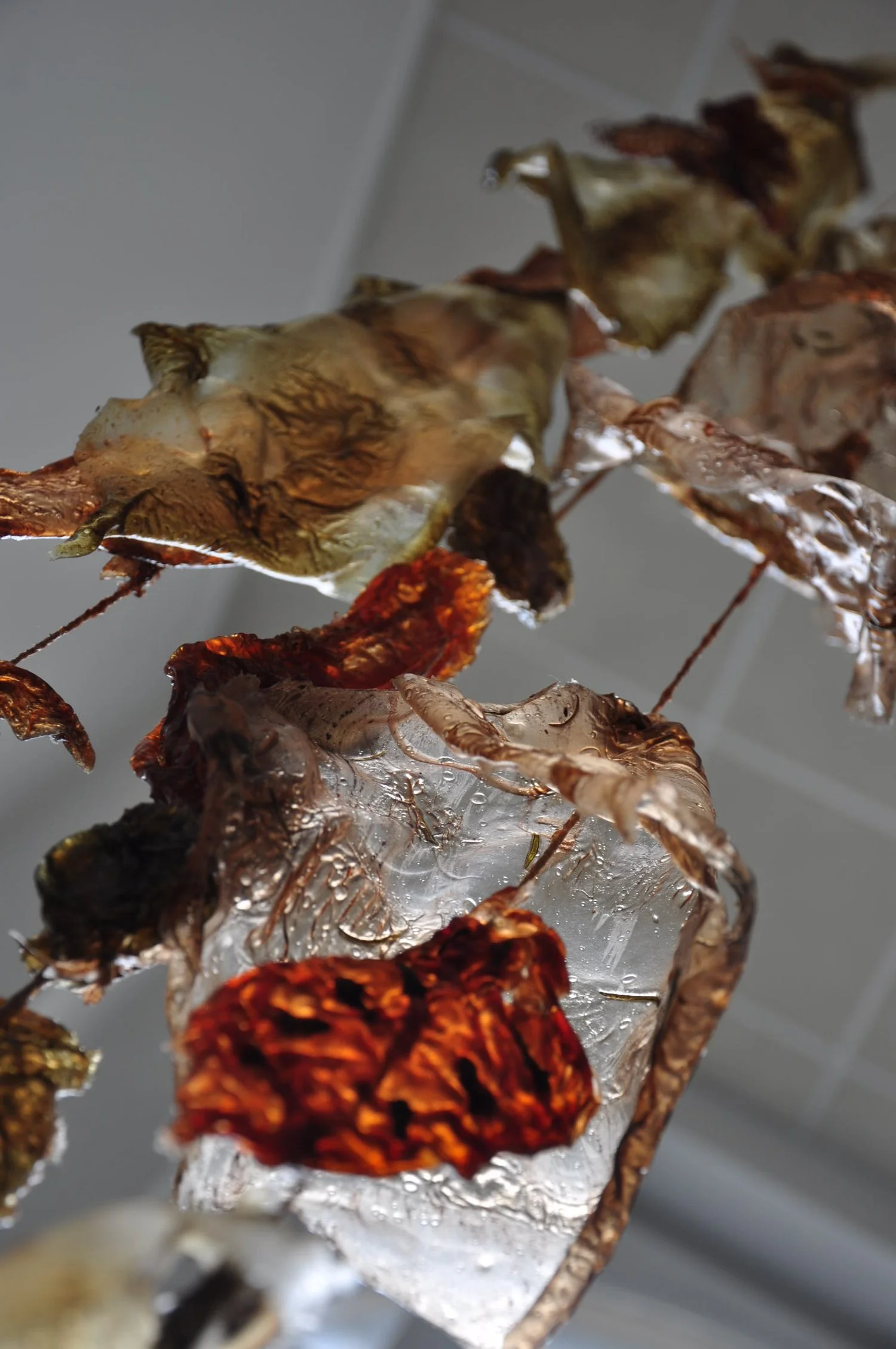 As we all know, the earth and its roots don't give fruit. And yet, we sometimes see a few growing, suspended in the air. With Frutos de Mandioca and Frutos da Terra, we discover a sort of life-size agroforestry garden, where hand-made objects have germinated and matured like fruit, combining natural ingredients and materials according to secret recipes handed down for generations. Through a play of translucent transparencies and burnished color gradations, these "fruits" question our knowledge of materials, our abilit.